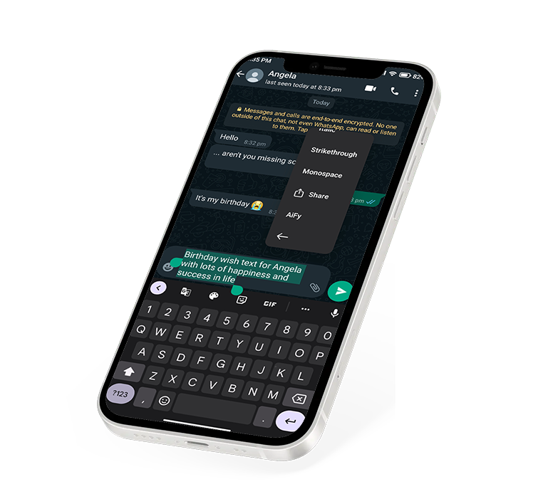 Select text anywhere and tap on 'AiFy' to generate intelligent responses to your queries.